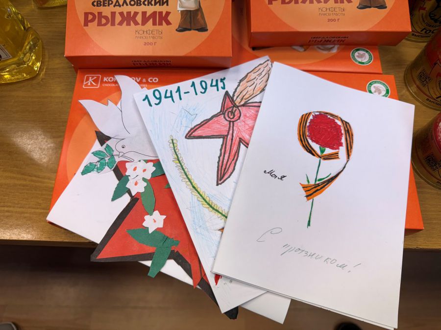 К акции присоединились свердловские школьники, изготовившие для ветеранов поздравительные открытки с тёплыми пожеланиями.