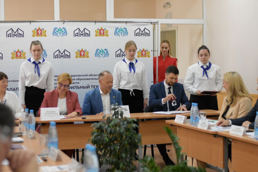 Региональные власти, Алапаевский многопрофильный техникум и отраслевые предприятия заключили соглашения о сотрудничестве в сфере подготовки кадров по востребованным в регионе специальностям, в том числе в металлургической отрасли. Документ в присутствии первого заместителя губернатора Свердловской области Алексея Шмыкова завизировали министр образования Свердловской области Светлана Тренихина, глава областного Минпрома Сергей Пересторонин, директор техникума Татьяна Кургузкина и представители предприятий. Всего было подписано пять соглашений.