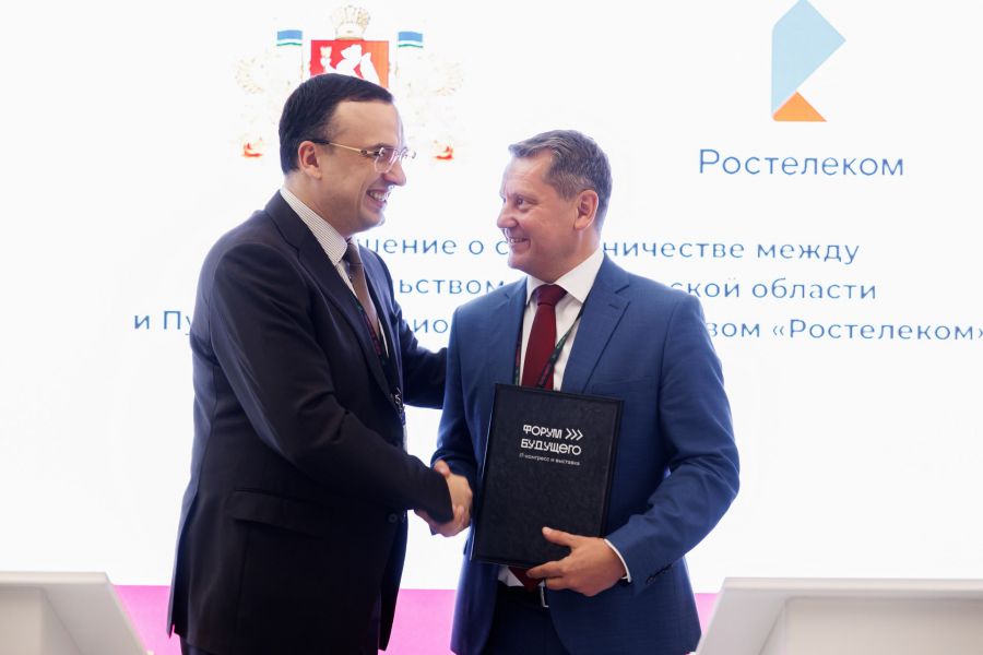 Правительство Свердловской области и компания «Ростелеком» договорились объединить усилия по развитию и модернизации цифровой инфраструктуры региона. Соответствующее соглашение подписали на полях III IT-конгресса и выставки «Форум будущего» и.о. заместителя губернатора — министра инвестиций и развития Свердловской области Дмитрий Ионин и директор Екатеринбургского филиала компании «Ростелеком» Дмитрий Лукошков.