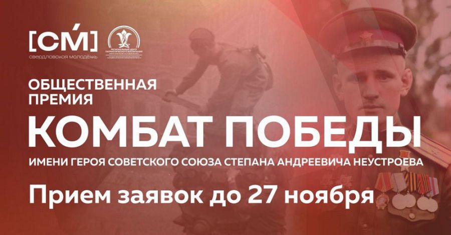 Лауреатов общественной премии «Комбат Победы» выберут в Свердловской области. Приём заявок на общественную премию имени Героя Советского Союза Степана Неустроева открыт до 27 ноября. Премия будет вручена в номинациях: «Сохранение Памяти», «Собственным примером» и «Открытое сердце». Индивидуальную заявку можно направить по ссылке.