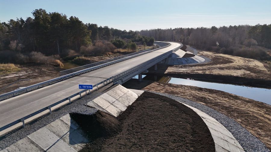 «В этом году дорожники реконструируют 5 мостов и путепроводов в Свердловской области в рамках нацпроекта „Инфраструктура для жизни“. На сегодня завершены работы на третьем сооружении. Открыто движение по мосту через реку Тегень в Слободо-Туринском районе. Дорожники провели масштабную работу, построив вместо старого деревянного сооружения надёжный железобетонный мост. За два года реконструировали 526 метров, из них 60 метров — непосредственно мост», — написал Денис Паслер.