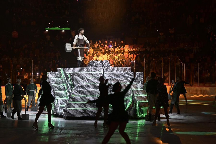 Центральной темой предматчевого шоу Кубка Вызова стали уральские минералы и мастерство их превращения в драгоценные камни. Образ Данилы-мастера из сказа Павла Бажова «Каменный цветок» стал символом пути хоккеиста — через труд, точность и упорство к профессиональному совершенству. В финале церемонии каменная глыба «раскололась», обнажив малахитовые и изумрудные оттенки, а на вершине кристаллической платформы появился главный трофей — Кубок Вызова.