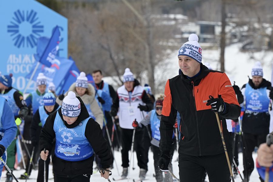 Денис Паслер с десятками тысяч уральцев принял участие в массовой лыжной гонке «Лыжня России» в Свердловской области