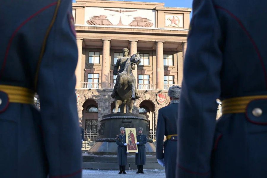 Губернатор Свердловской области Денис Паслер в День защитника Отечества принял участие в торжественной церемонии возложения цветов к памятнику маршала Советского Союза Георгия Жукова перед штабом Центрального военного округа в Екатеринбурге.
