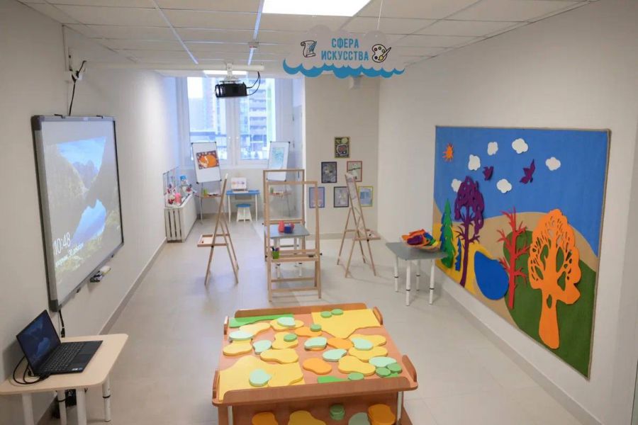 Предусмотрены дополнительные занятия по робототехнике, шахматам, есть студия изобразительных искусств, цифровая лаборатория и биолаборатория «Умная теплица». В каждой группе — интерактивные доски с мультимедийным проектором. Для физического развития ребят оборудованы уличные площадки, скалодром, спортивный зал с баскетбольными кольцами, беговыми дорожками и сухим бассейном.