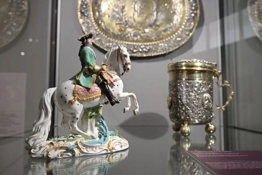 В экспозицию выставочных проектов, представленных в центре «Эрмитаж-Урал» и Екатеринбургском музее ИЗО вошли более 200 предметов из собрания Государственного Эрмитажа, в том числе мемориальные вещи Екатерины II. Посетители могут увидеть изделия Троицкого завода А.Ф. Турчанинова, например, самовар с росписью, и письменный прибор, а также изделия Екатеринбургской гранильной фабрики.