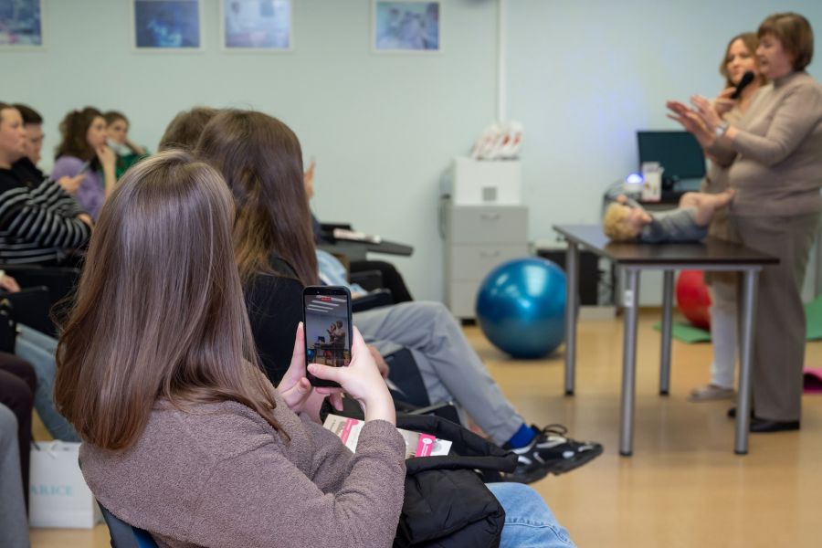 Помимо организации таких обучающих встреч на базе Областного перинатального центра команда специалистов участвует в мероприятиях, которые проводят сотрудники органов ЗАГС, а также в выездных активностях. С 2026 года открыты Школа беременных и Школа грудного вскармливания — их посетили уже более 100 будущих мам.