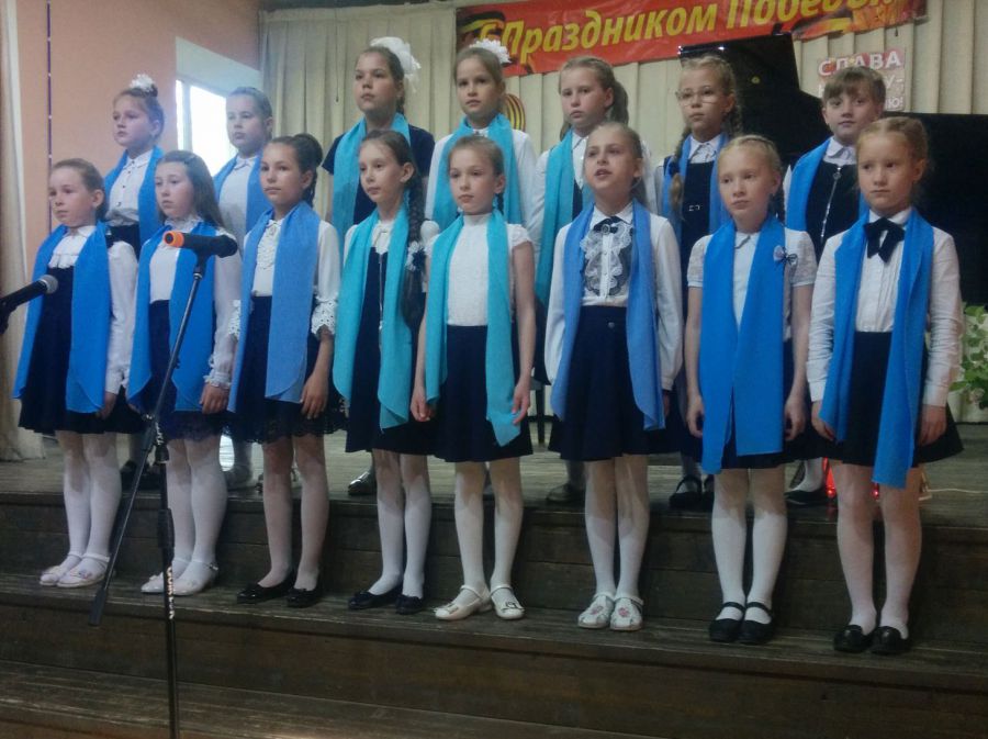 Чистые красивые голоса хоров и солистов детской музыкальной школы звучали в концерте «Музыка Победы». На сцене была почти вся школа – учащиеся первого и второго, средних классов, вокальный ансамбль старшеклассников, солисты Ульяна Поштар и Кристина Коврова исполнили уже известные и современные песни о войне. Безусловным украшением концерта стало выступление ансамбля преподавателей «Колорит» с попурри на темы военных песен и ансамбля преподавателей «Гармония» с песней «Ты же выжил, солдат».