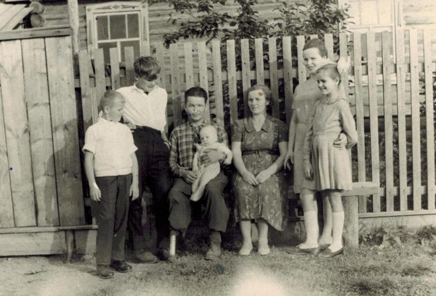…Ну вот и дом родной. Его встречала мама Фекла Филлипеновна. Вскоре познакомился с молодой красивой Таисьей Степановной, поженились, пошли детки, а жили все – сами супруги, шестеро детей, мать - в крохотной избушке на курьих ножках. Спали даже под столом – не хватало места. Задумали дом строить, леспромхоз помог строительным лесом, а жители поселка Курьинская база поставили сруб дома. Все остальное они сделали своими силами, помогал сын Владимир одиннадцати лет от роду. Дом получился веселый, много окон, светлый, да вот беда – сломал Николай Семенович здоровую ногу, лежал в гипсе. Но все зажило, снова встал на ноги, одну из которых заменял протез. Во дворе много скотины – корова, свинья, куры, утки. Огород не пахали, а копали лопатами вручную, а это почти десять соток. Николай Семенович не сидел дома, со всеми вместе трудился и на огороде, и на покосе. Развели сад. Со временем отец окончил курсы бухгалтеров и работал главным бухгалтером в конторе леспромхоза, а жена в больнице – санитаркой.